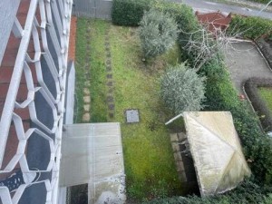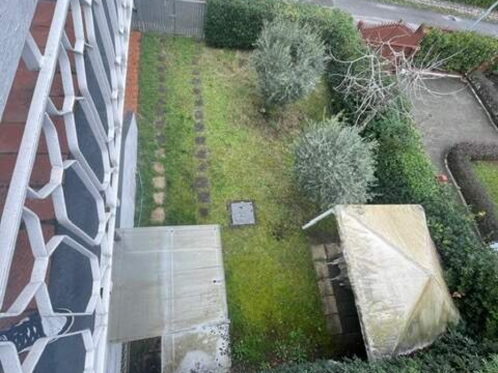 <Completa la proprietà un ampio giardino vista mare con gazebo , tre posti auto dentro la proprietà .
